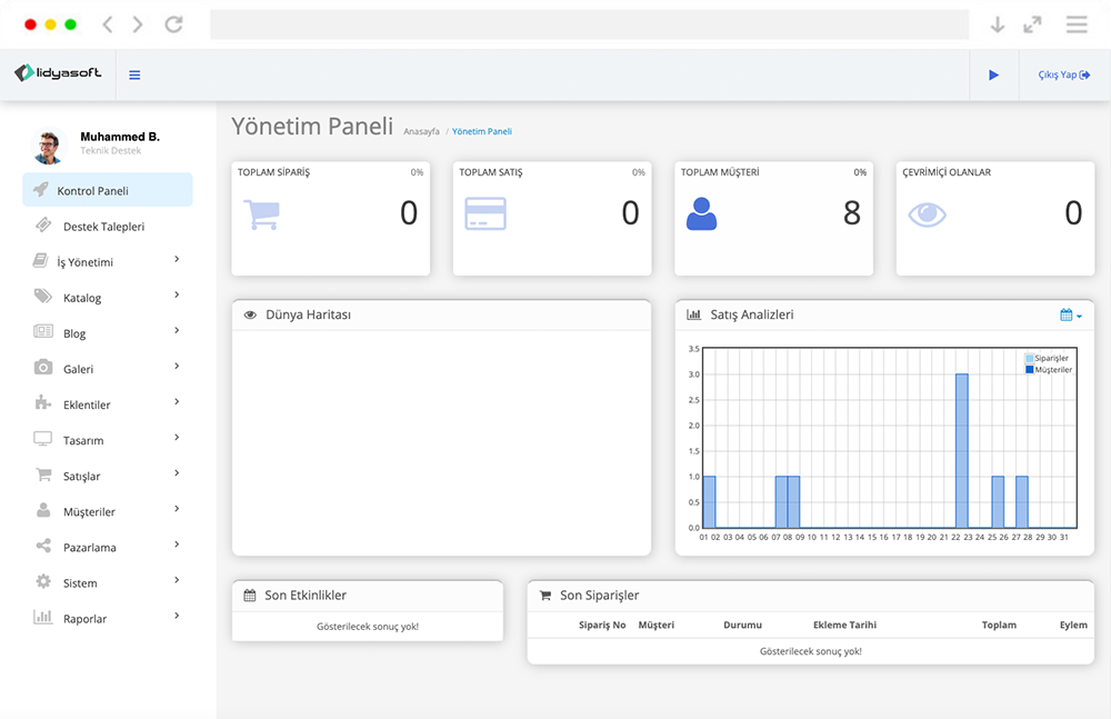 Web sitemiz modüler ve geliştirilebilir yazılım altyapısına sahip Lidya Builder sayesinde yazılıma uymak zorunda bırakılmazsınız. Tüm işlemleriniz ihtiyaçlarınıza uygun olarak planlanır ve geliştirilir. Lidya Builder altyapısı sayesinde hayalinizin önüne geçebilirsiniz. Daha önce herhangi bir deneyim sahibi olmasa bile kısa sürede hayalinizdeki web siteye sahip olabilirsiniz.